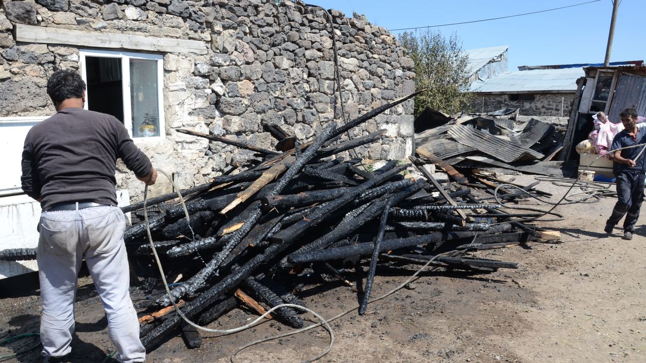 KARS (AA) - Kars'ın Sarıkamış ilçesinde çıkan yangında, 1 ev, 2 samanlık ve 1 ahır kullanılamaz hale geldi.