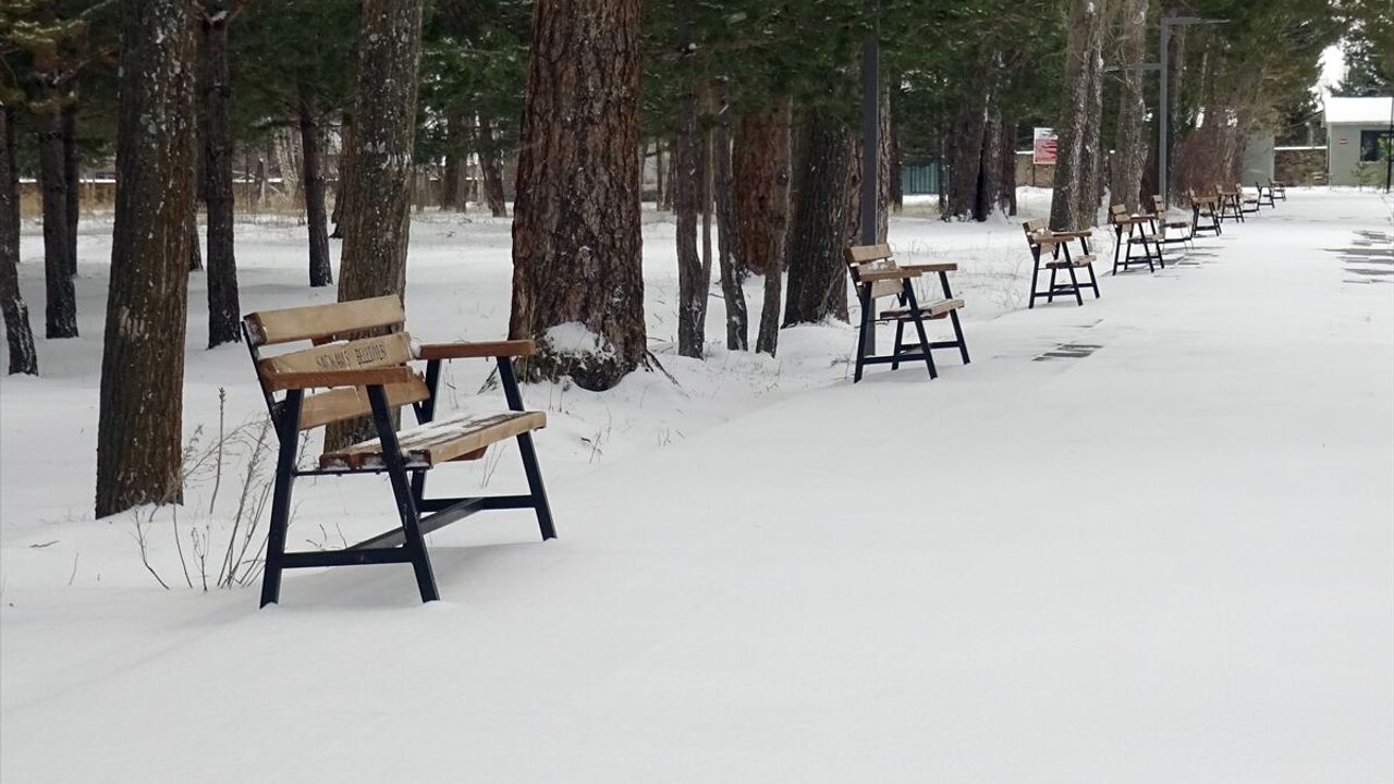 Yağan karla sarıçam ormanları, bitkiler ve mor kardelenler beyaza büründü.