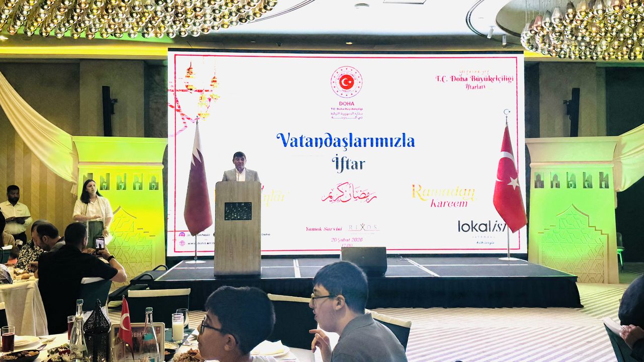 DOHA (AA) - Türkiye'nin Doha Büyükelçiliği tarafından düzenlenen organizasyonla Katar'da bulunan Türkler iftar sofrasında bir araya geldi.