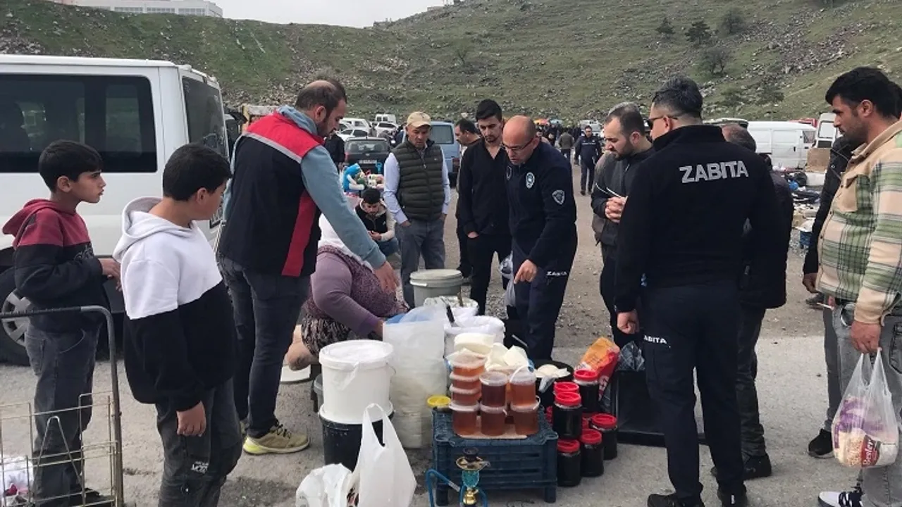 Bu kapsamda Battalgazi Mahallesi’nde kurulan bit pazarına denetim gerçekleştiren Büyükşehir Belediyesi Zabıtası ve beraberindeki diğer yetkililer, sağlığa zararlı olacak pek çok gıda maddesine el koydu.