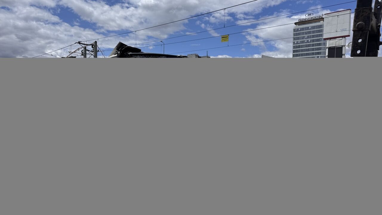 Çarpışmanın etkisiyle savrulan 38 AKL 502 plakalı araç tramvay yoluna girdi.
