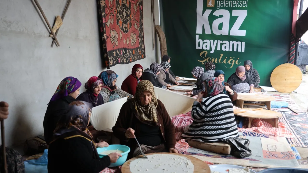 Eseler Köyü’nde 24 Ocak Cuma günü 4’üncüsü düzenlenecek olan Kaz Bayramı için köydeki kadınlar imece usulü kuru yufka açmak için bir araya geldi.KOCAELİ (İGFA) - Kocaeli Büyükşehir Belediyesi ile Kocaeli Kent Konseyi iş birliğinde Eseler Köyü’nde dördüncüsü düzenlenecek olan Kaz Bayramı’nın hazırlıkları başladı.