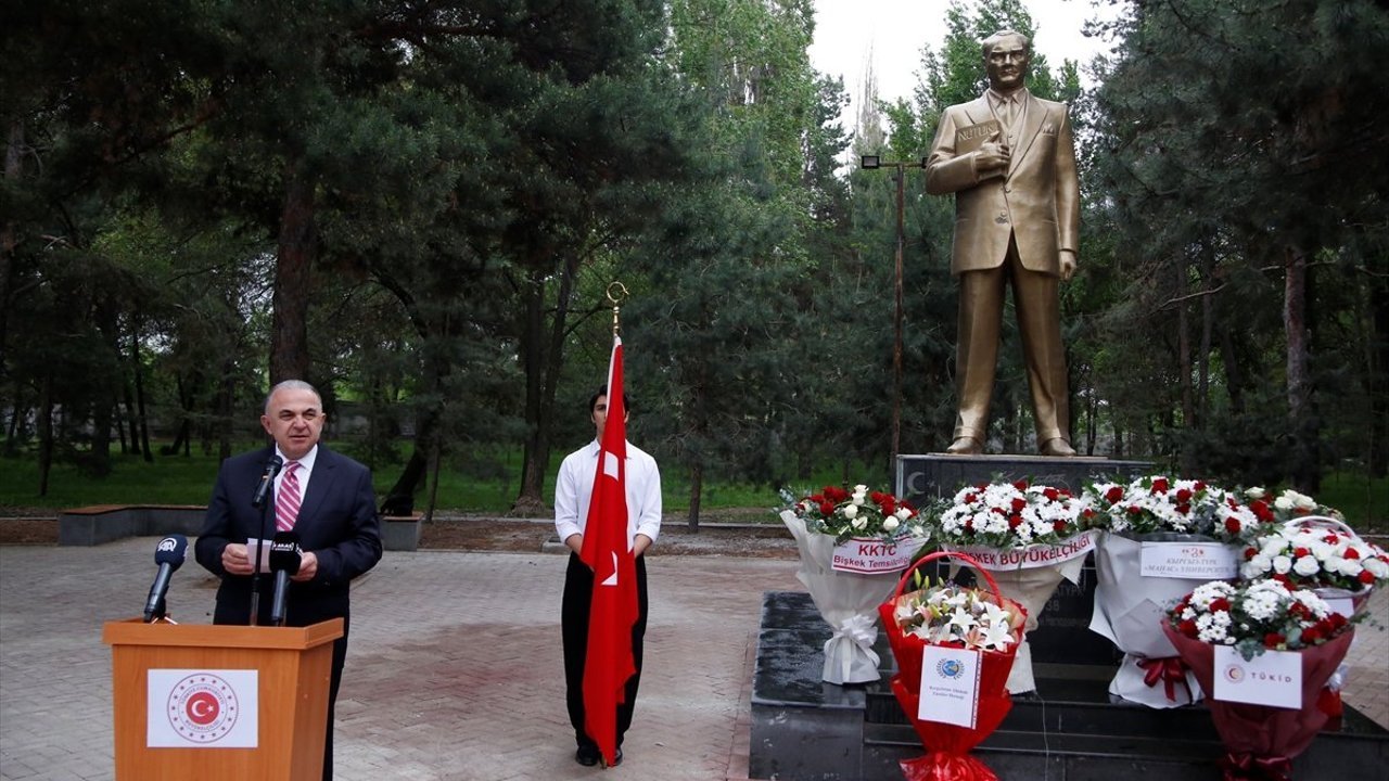 Türkiye'nin Bişkek Büyükelçiliğince, Bişkek Atatürk Parkı'nda Mustafa Kemal Atatürk Anıtı önünde resmi tören düzenledi.