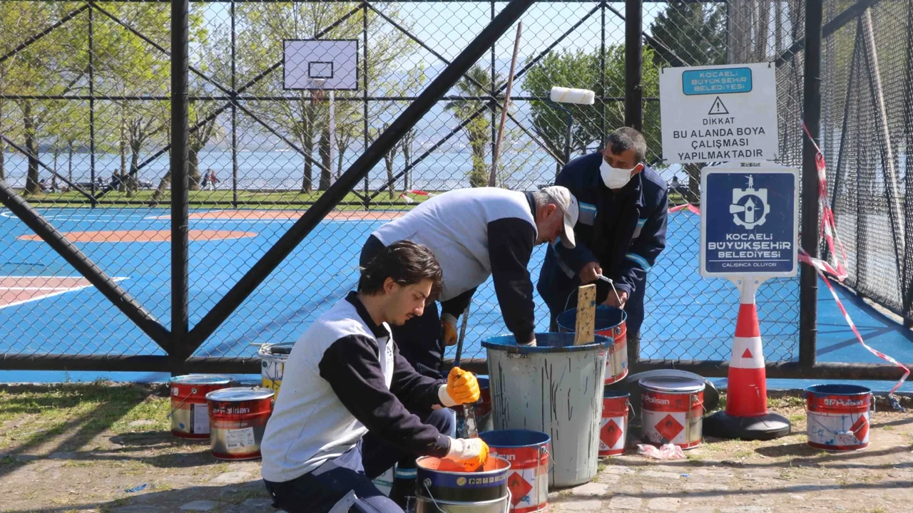 Park ve Bahçeler Dairesi Başkanlığı ekipleri, yaklaşan yaz sezonu öncesi Kocaeli genelindeki park, bahçe ve spor alanlarında bakım ve onarım çalışmaları yapıyor. Bu çalışmalar dâhilinde İzmit Plajyolu sahilinde bulunan iki adet basketbol sahasında zemin boyama ve çizgi yenileme çalışması yerine getirildi. Çalışmaların Kocaeli genelinde sürdürüleceği bildirildi.