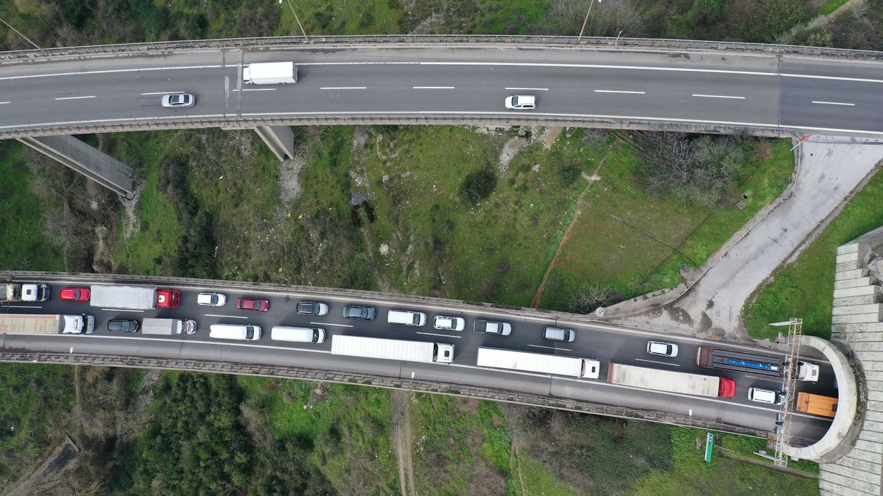 Bu arada, otoyolda oluşan yoğunluk havadan görüntülendi.