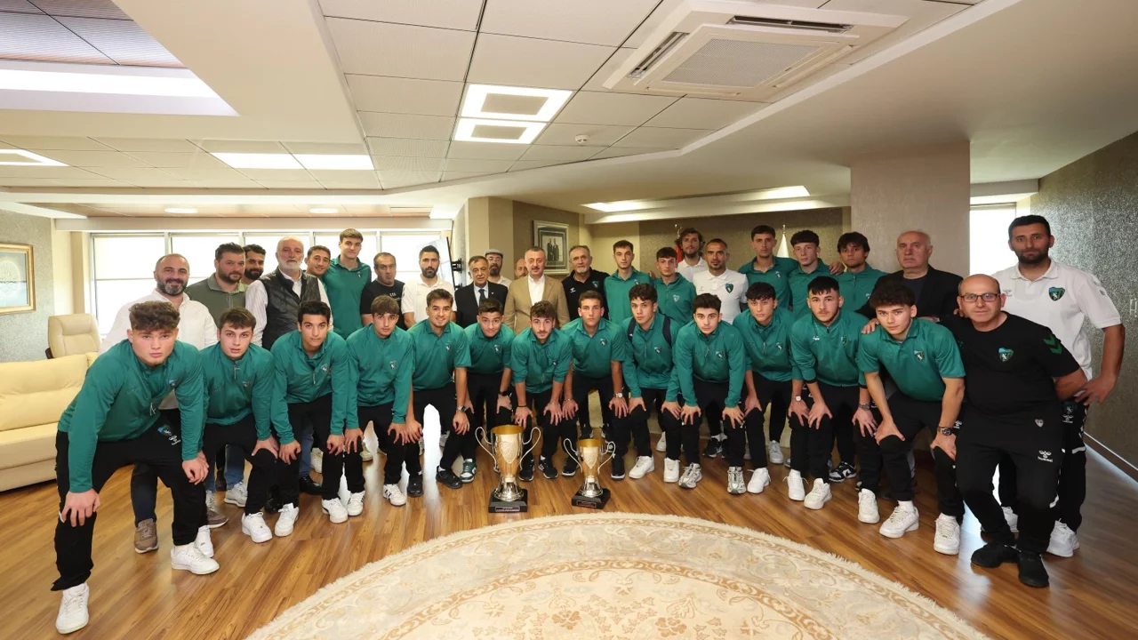 Şampiyon ekip bugün Kocaelispor Yönetim Kurulu Üyesi ve Alt Yapı Akademi Başkanı Rafet Kırgız, Kocaelispor Genel Koordinatörü Aydın Günaydın, Kocaelispor U17 takımı teknik sorumlusu Murat Tiryaki, yöneticiler Hamza Bostan, İsmail Solmaz, Burak Gülener, İsmail Taş ve futbolcularla Kocaeli Büyükşehir Belediye Başkanı Doç.Dr.Tahir Büyükakın’a geldi.
