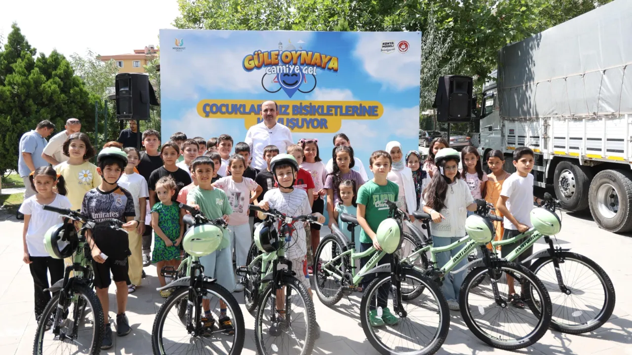 Konya Büyükşehir Belediye Başkanı Uğur İbrahim Altay, “Güle Oynaya Camiye Gel” projesi kapsamında yaz tatilinde 40 gün sabah namazına giderek bisiklet almaya hak kazanan Karatay’daki çocuklarla bir araya geldi.KONYA (İGFA) - Konya Büyükşehir Belediye Başkanı Uğur İbrahim Altay, “Güle Oynaya Camiye Gel” projesi kapsamında yaz tatilinde bisiklet almaya hak kazanan çocuklara bisikletlerini hediye etti. Başkan Altay, ilk olarak Karatay 15 Temmuz Şehitler Camii’nde, ardından Karatay Ahmet Kolat Camii’nde çocukların bisiklet sevincine eşlik etti.