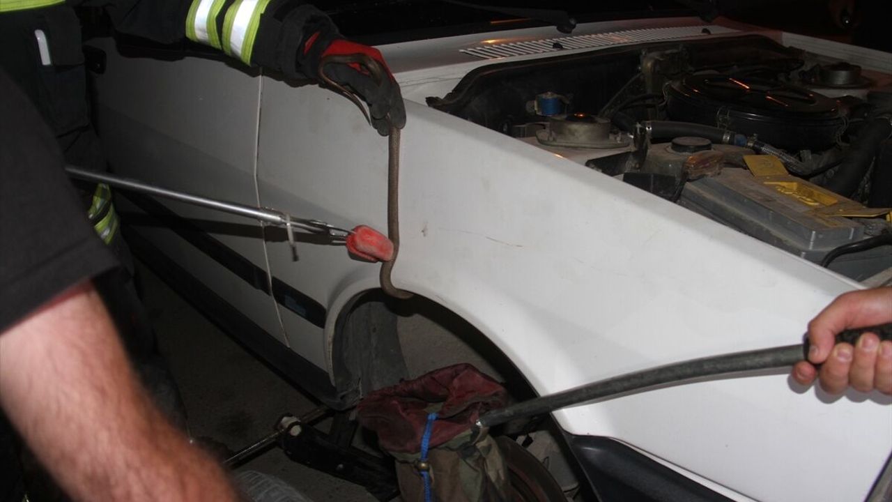 KONYA (AA) - Konya'nın Beyşehir ilçesinde bir otomobilin jantına giren yılan, itfaiye ekiplerince çıkarıldı.