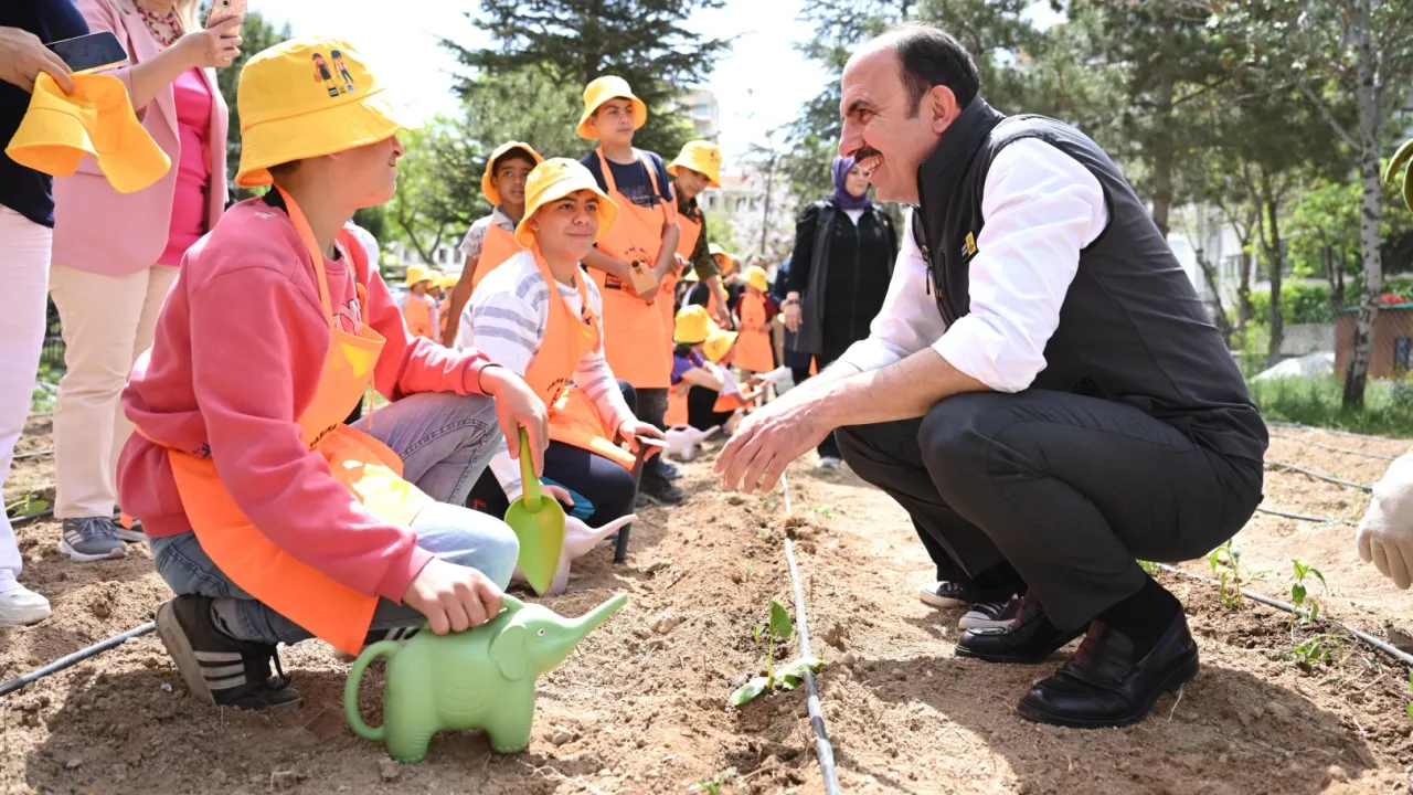 Başkan Altay, daha sonra Büyükşehir Belediyesi’nin “Tarıma Engel Yok” projesi kapsamında okuldaki özel öğrencilerle birlikte sebze fidelerini toprakla buluşturdu.