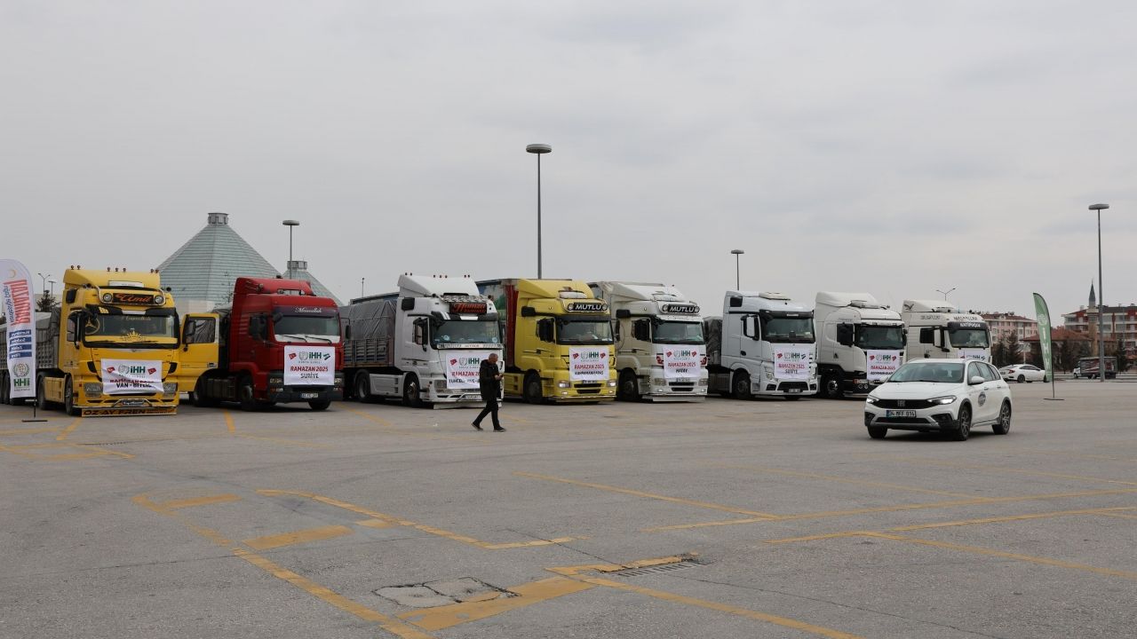 KONYA (AA) - Konya'da hayırseverlerin katkılarıyla hazırlanan, gıda, soba ve iftarlık paketlerin yer aldığı yardım malzemeleri, 8 tırla Suriye ve 6 Şubat 2023'teki depremlerden etkilenen illere gönderildi.