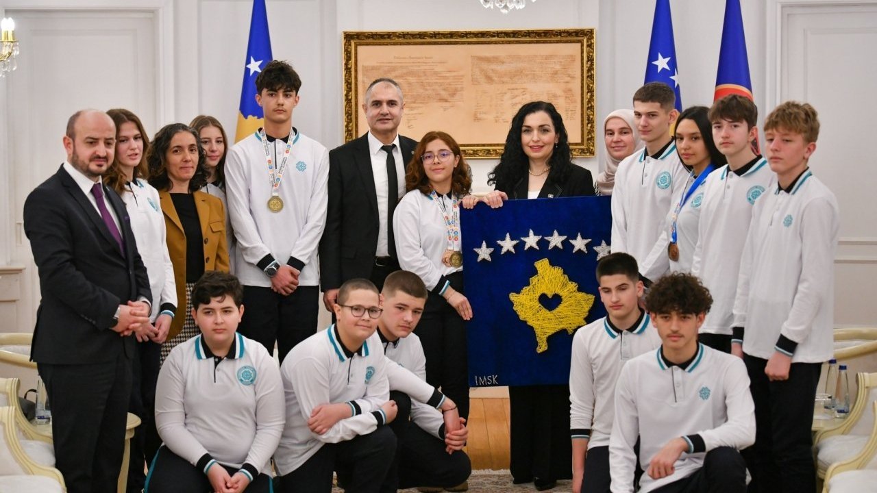 Kosova Cumhurbaşkanlığından yapılan yazılı açıklamada, Cumhurbaşkanı Osmani’nin, Uluslararası STEM Olimpiyatları'nda 19 madalya kazanan 14 öğrenciyi Cumhurbaşkanlığı Ofisi'nde ağırladığı belirtildi.