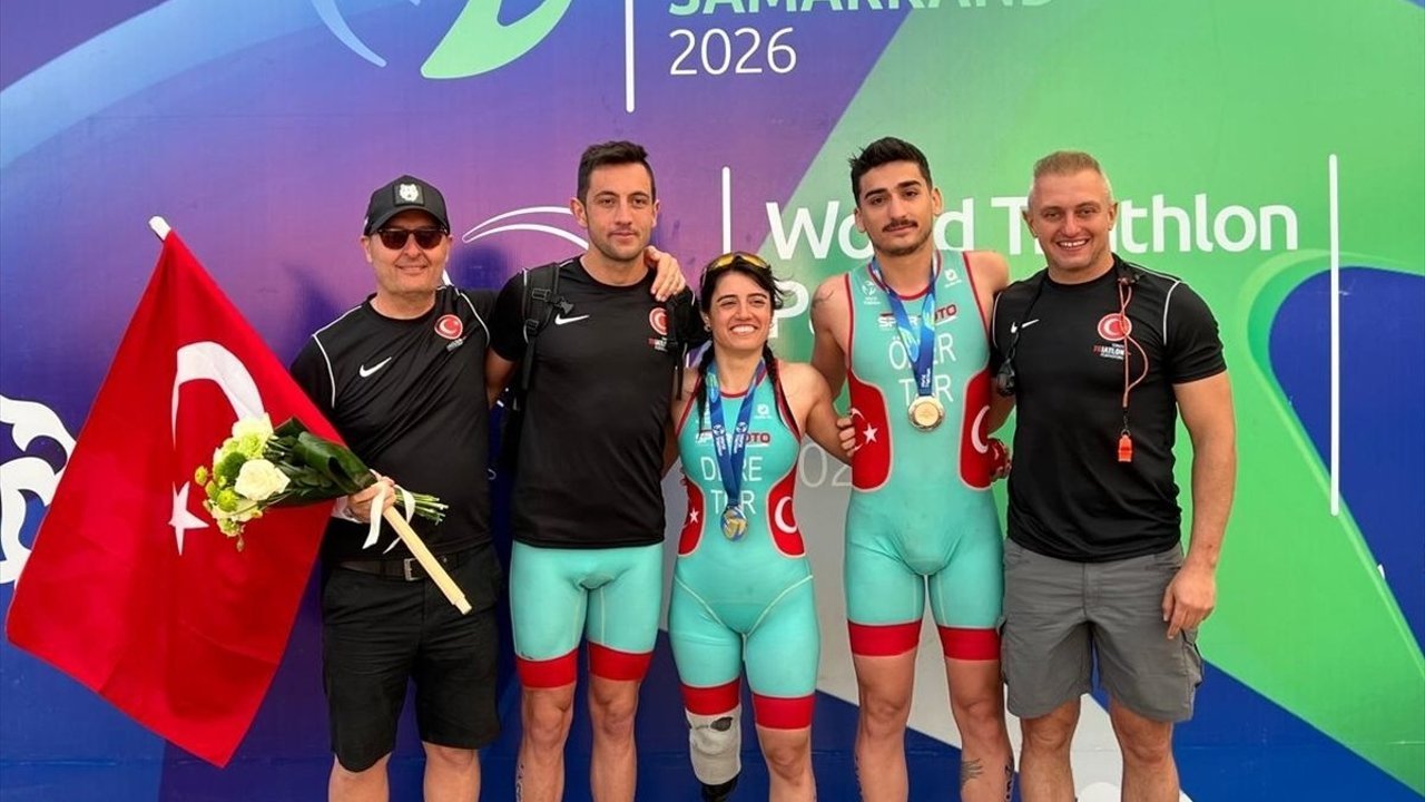 ANKARA (AA) - Paratriatlon Dünya Kupası'nın Özbekistan'da düzenlenen ayağına katılan milli sporculardan Kübra Dere ve Uğurcan Özer, altın madalya kazandı.
