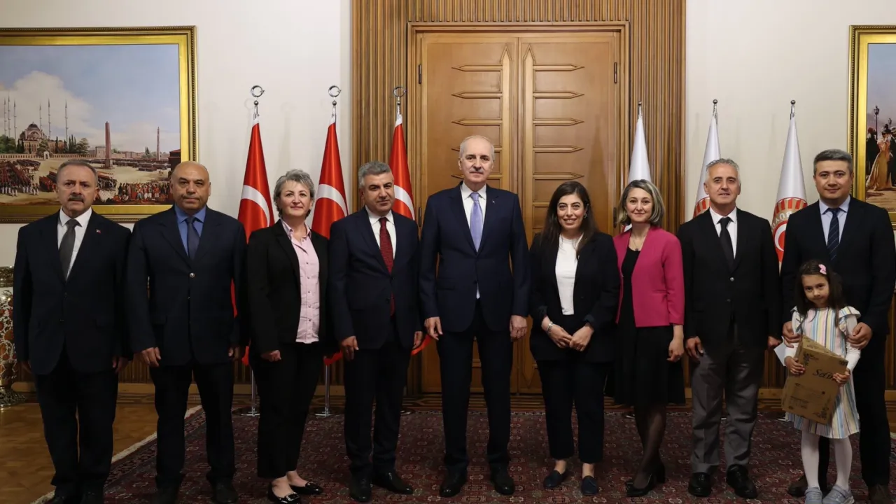 TBMM Başkanı Numan Kurtulmuş, Kurban Bayramı öncesinde Meclis personeliyle bir araya gelerek bayram tebriklerini kabul etti.ANKARA (İGFA) - TBMM Başkanı Numan Kurtulmuş, Kurban Bayramı dolayısıyla Meclis Tören Salonu’nda düzenlenen etkinlikte, Genel Sekreter Talip Uzun ile birlikte Meclis personelinin bayram tebriklerini kabul etti. Personelin çocuklarıyla da yakından ilgilenen Kurtulmuş, sıcak ve samimi bir sohbet gerçekleştirdi.