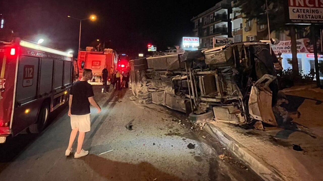 Alınan bilgiye göre, M.Y'nin kullandığı 09 SY 424 plakalı midibüs, Süleyman Demirel Bulvarı'nda park halindeki kamyonete çarparak devrildi.