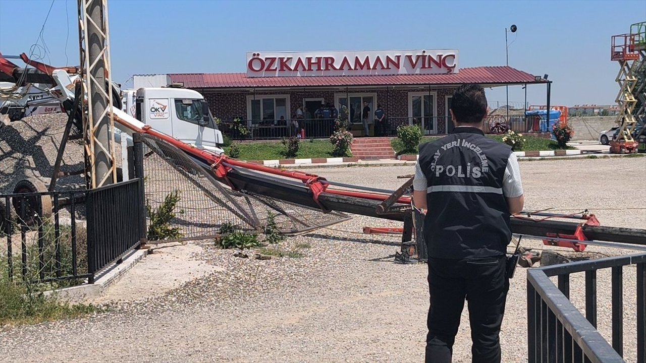 Merkeze bağlı Parmakören Mahallesi'ndeki bir işletmenin yaklaşık 20 metre yüksekliğindeki direğine Türk bayrağı asılması için kullanılan vinç, henüz belirlenemeyen nedenle devrildi.