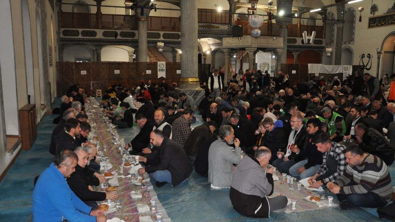 Tarihi Ulu Cami'de yer sofrası kurularak yapılan programa katılanlar hurma, su, ayran ve simitle iftar yaptı.