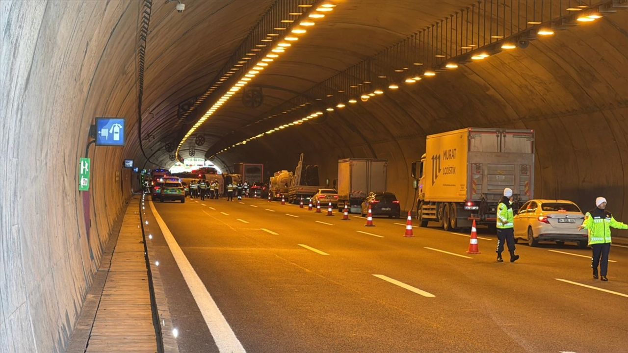 Kaza nedeniyle dört şeritli yolun üç şeridi trafiğe kapatılırken, bölgede uzun araç kuyrukları oluştu.
