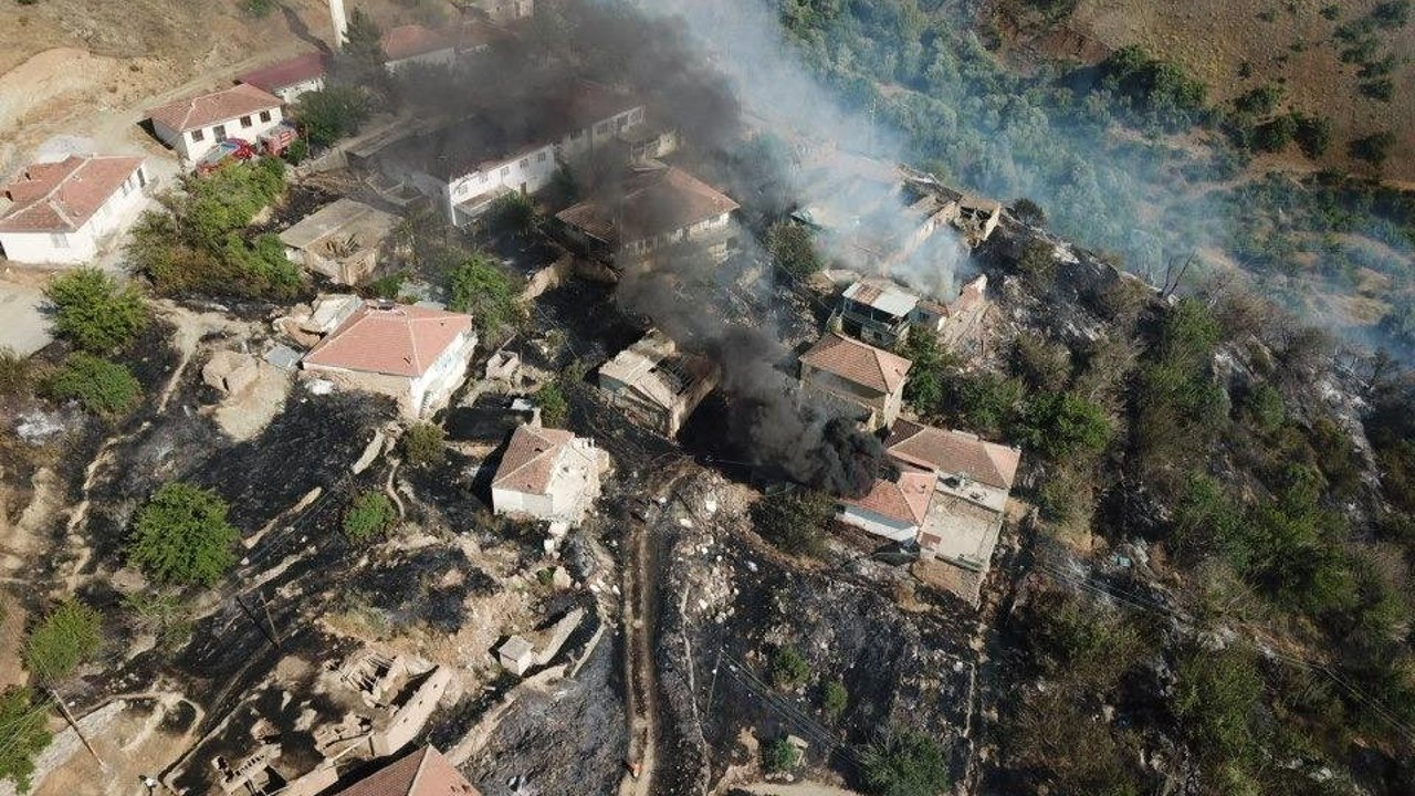 Kısa sürede geniş alana yayılan ve mahalledeki evlere de sıçrayan yangının kontrol altına alınması için çalışmalar sürüyor.
