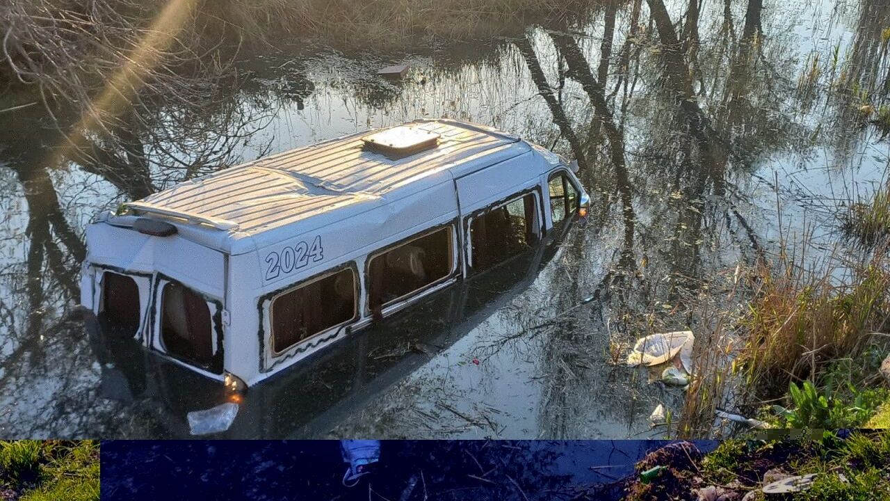 Manisa-Turgutlu çevre yolu Kazım Karabekir Mahallesi mevkisinde, Selman Ö'nün (50) kullandığı 45 J 6299 plakalı işçi servis minibüsü kontrolden çıkarak dereye devrildi.