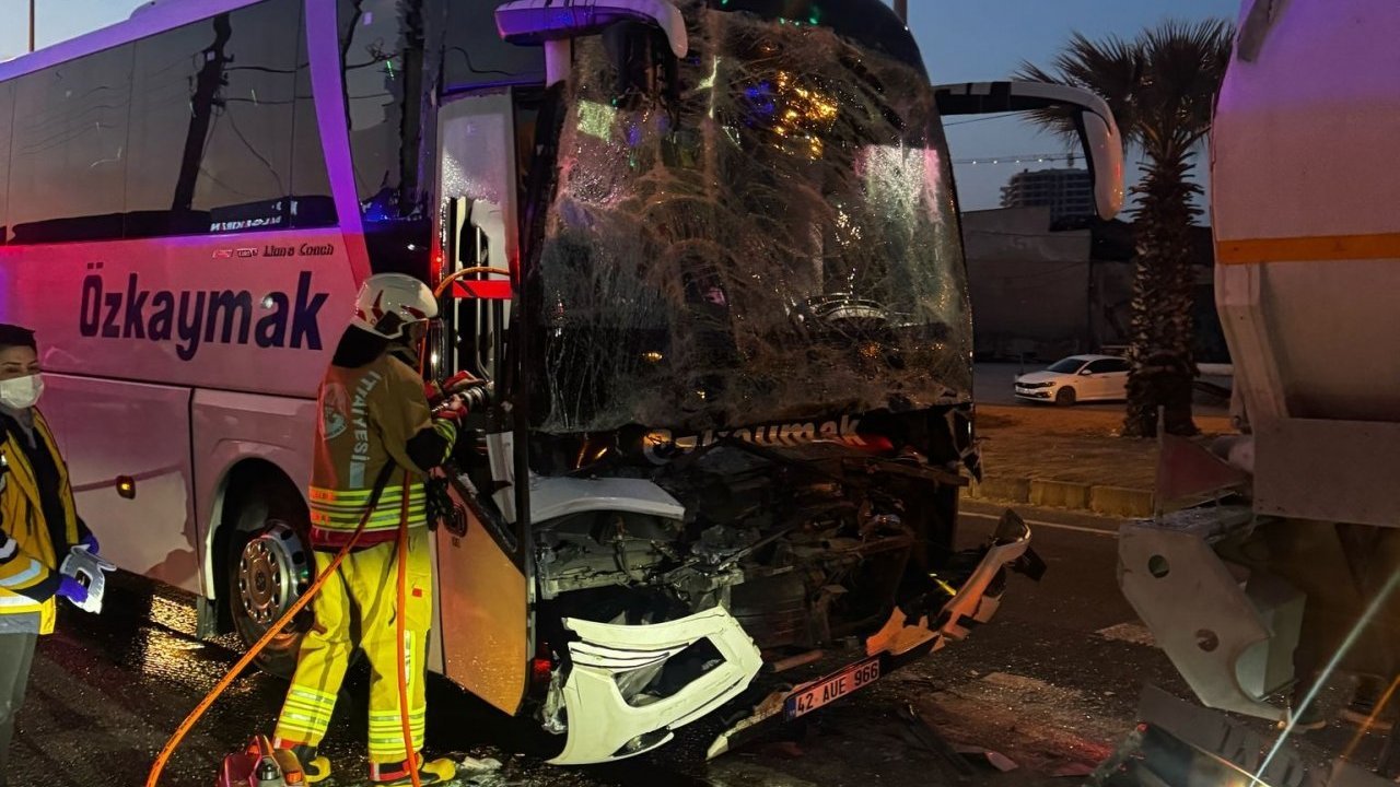 Çarpmanın etkisiyle otobüs, önündeki tanker ve otomobile çarptı.