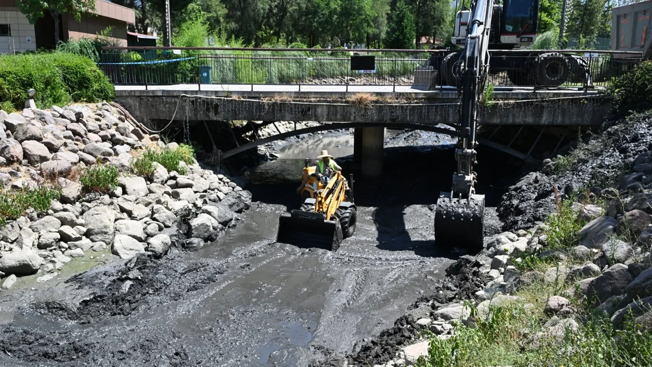Manisa Büyükşehir Belediyesi, kentin en çok ziyaret edilen yeşil alanlarından Atatürk Kent Parkı’ndaki derede zamanla oluşan kirliliğin önüne geçmek amacıyla kapsamlı bir temizlik çalışması yaptı.MANİSA (İGFA) - Manisa Su ve Kanalizasyon İdaresi (MASKİ) Genel Müdürlüğü ekipler tarafından derede zamanla oluşan çökelti, yosun, katı atıklar ile çevreye zarar veren unsurlar temizlenirken doğal su akışı da düzenlendi.