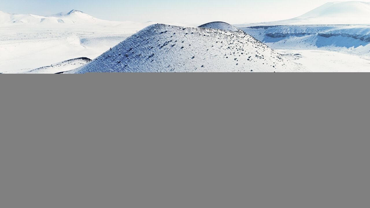 KONYA (AA) - Konya'nın Karapınar ilçesinde, jeolojik miras niteliğindeki Meke Gölü, kar yağışının ardından beyaz örtüyle kaplandı.