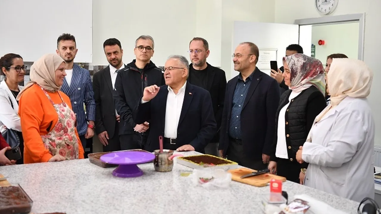Kayseri Büyükşehir Belediye Başkanı Dr. Memduh Büyükkılıç, KAYMEK tarafından gerçekleştirilen pasta yapımı kursunda mutfağa girerek, kursiyerlere bir araya geldi.KAYSERİ (İGFA) - Kayseri Büyükşehir Belediyesi’nin mesleki eğitim ve kültür faaliyetlerini gerçekleştiren kuruluşu Kayseri Mesleki Eğitim ve Kültür A.Ş. (KAYMEK), Kayseri’nin zengin gastronomi kültürüne sahip çıkmak adına önemli etkinliklerini sürdürüyor.