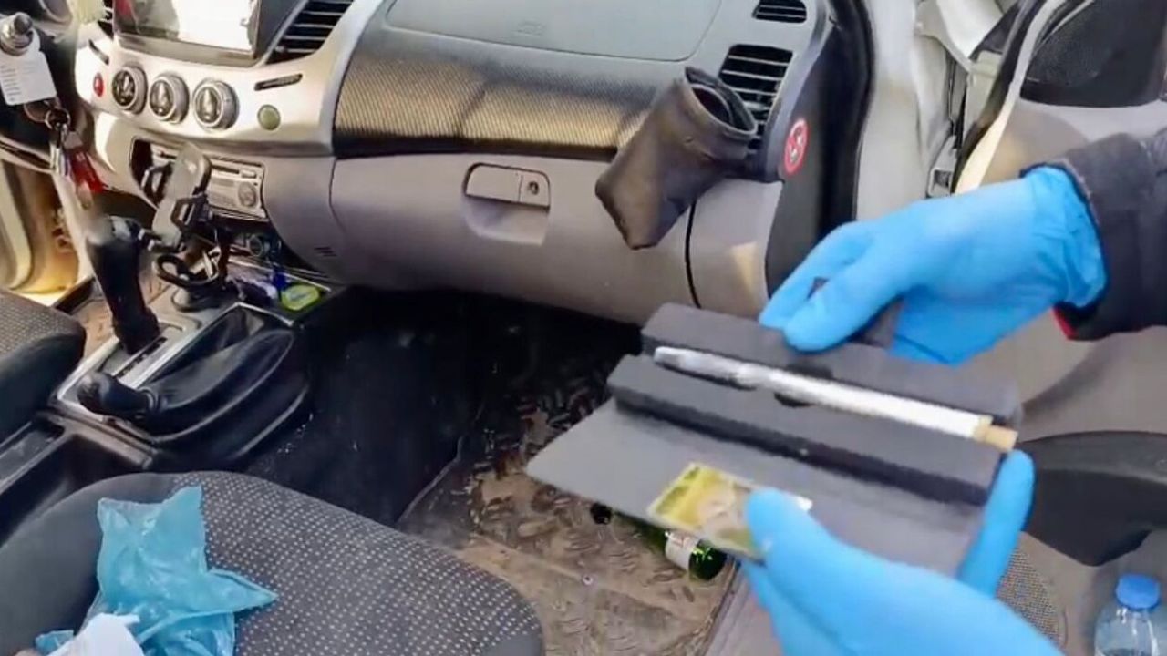 Polis ekipleri, araçtaki M.N. ve S.Ö'yü gözaltına aldı.