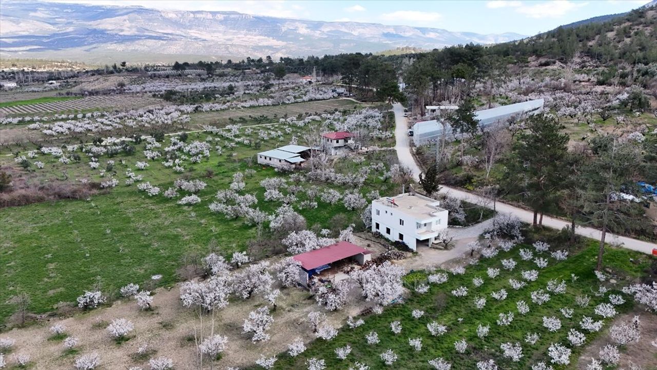MERSİN (AA) - Mersin'in Mut ilçesinde çiçek açmasıyla beyaza bürünen erik ağaçları dronla kaydedildi.