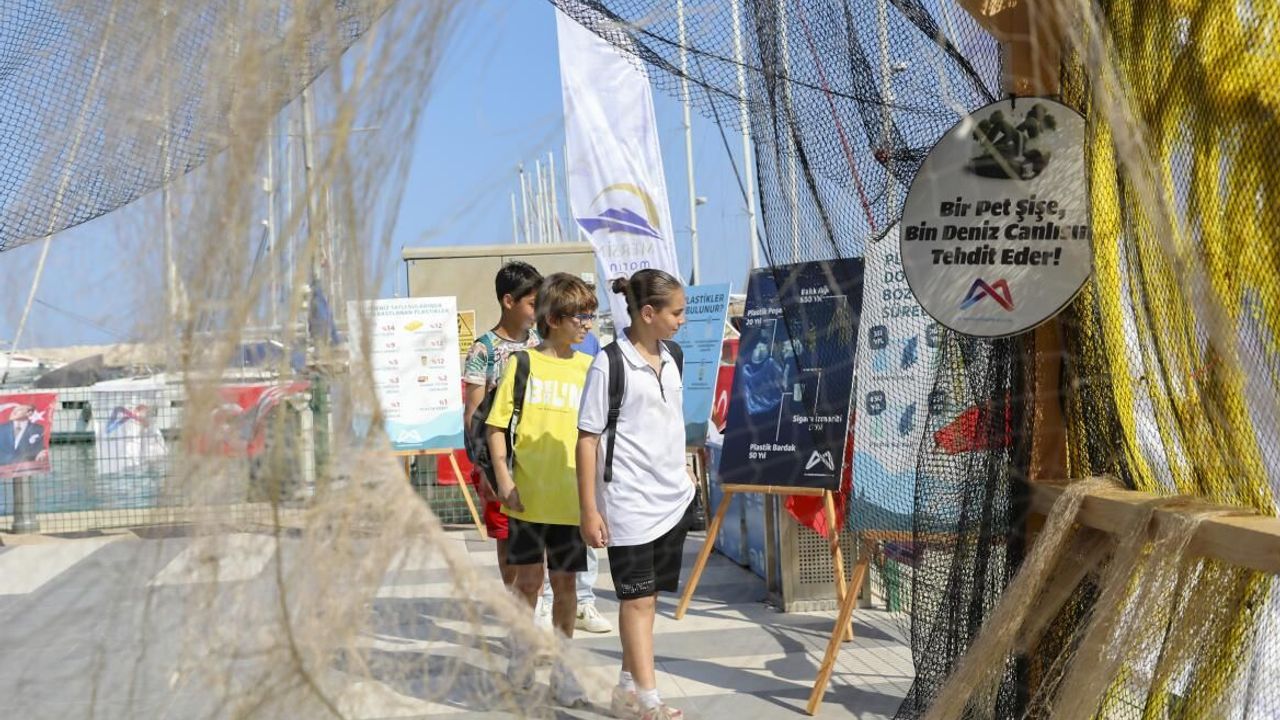 Toplanan atıkların farkındalık için sergilendiği etkinlikte ziyaretçiler hayalet ağlardan yapılan tünel ile deniz canlılarının yaşadığı zorlukları deneyimleme imkanı buldu.