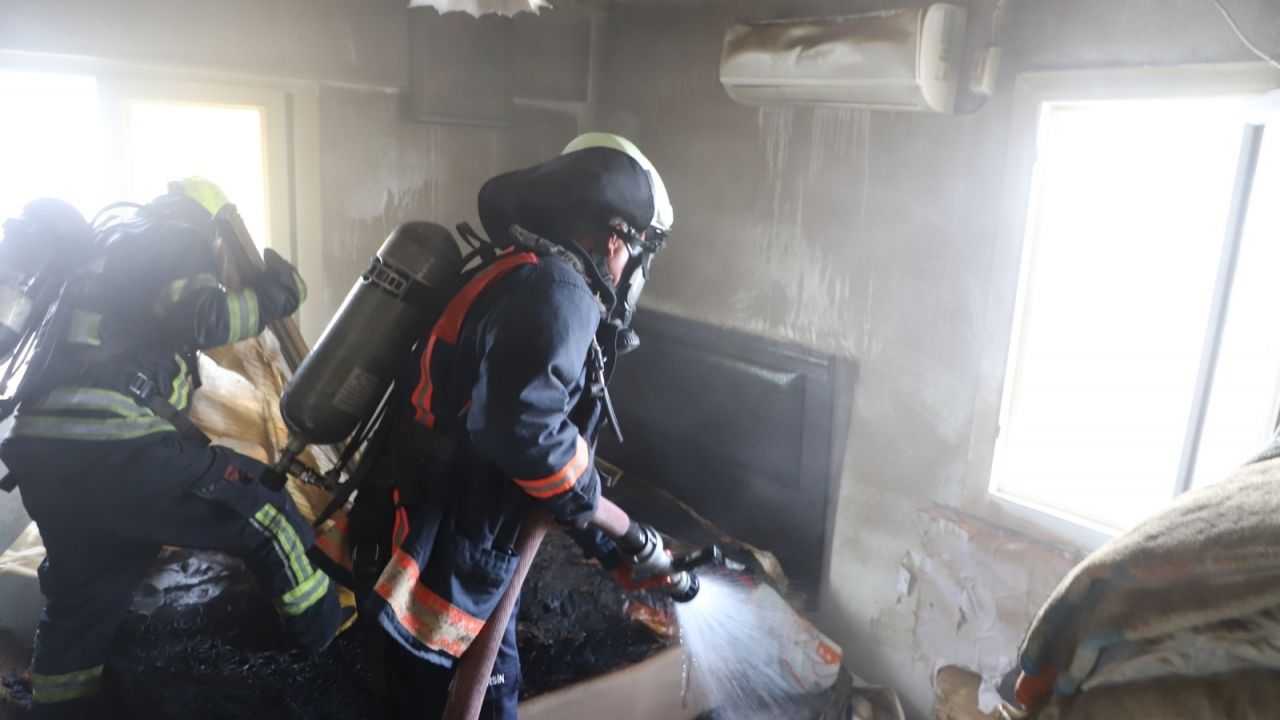 İtfaiyenin müdahalesiyle söndürülen yangın sonucu evde hasar oluştu.