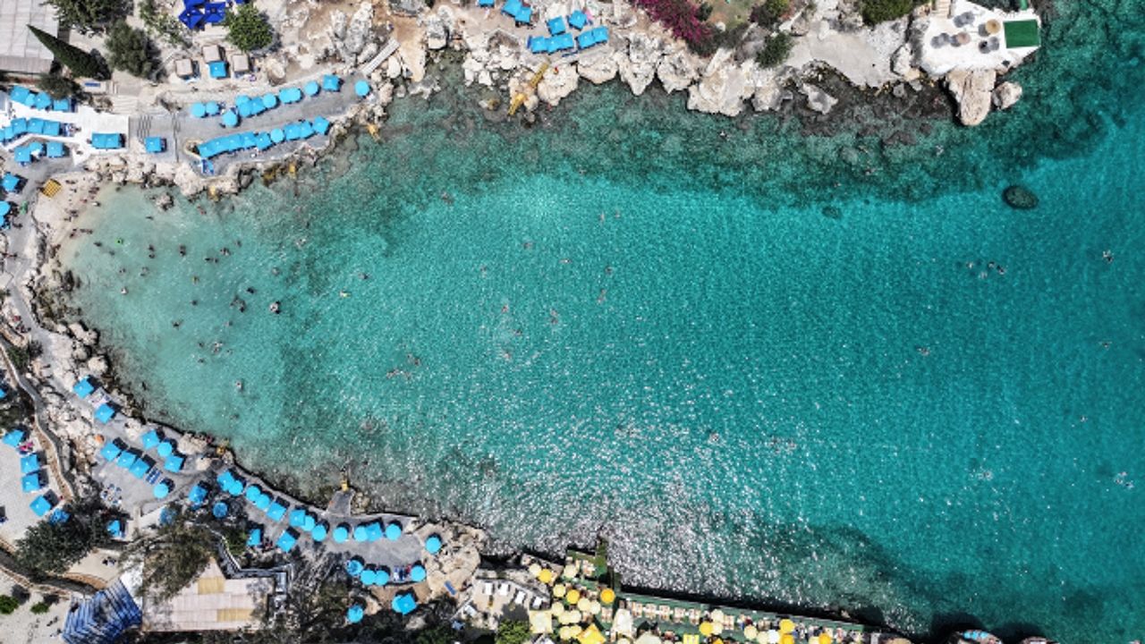 Şezlong ve şemsiyelerle dolan plajlardaki hareketlilik dron ile havadan görüntülendi.