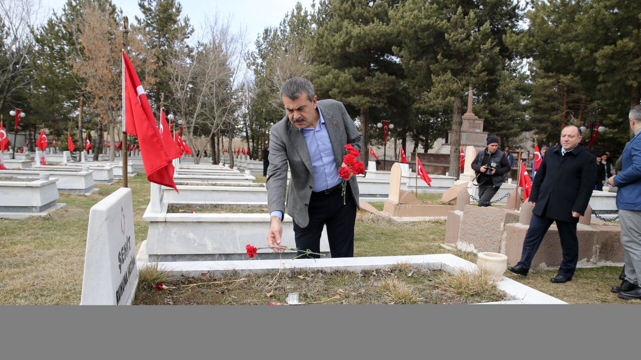 Kent merkezindeki Kars Kapı Şehitliği'nde kabirleri ziyaret eden Tekin, mezarlara karanfil bıraktı, burada Kur'an-ı Kerim okuyan bir çocuğu dinledi.