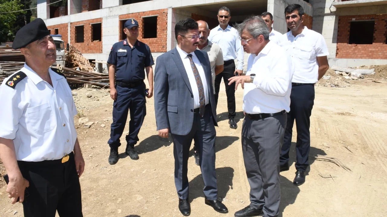 Bursa'nın Mudanya ilçesi Tirilye Mahallesi'nde hayırsever Eren Sözal tarafından yaptırılan 12 derslikli Zeytinbağı Ortaokulu inşaatında incelemelerde bulunan Mudanya Kaymakamı Ayhan Terzi, eğitime katkıyı övdü.BURSA (İGFA) - Mudanya Kaymakamı Ayhan Terzi, İlçe Milli Eğitim Müdürü Suat Topal, İlçe Jandarma Komutanı Yarbay Ercan Yavuz ve Tirilye Mahalle Muhtarı Süleyman Alkiz ile birlikte yapımı devam eden Zeytinbağı Ortaokulu inşaatını ziyaret etti.