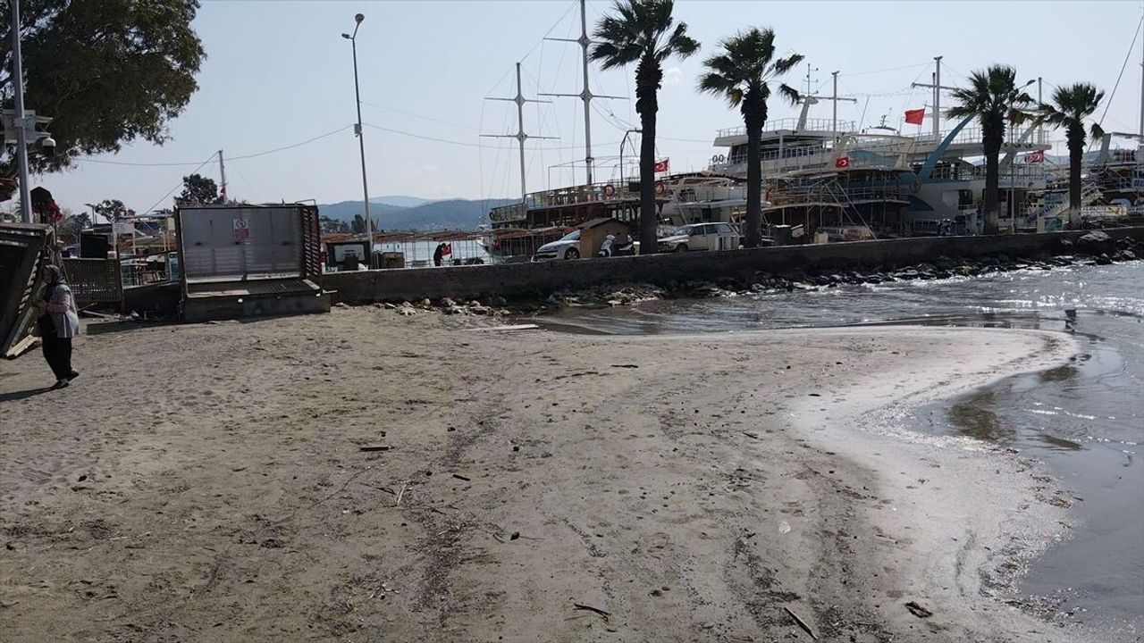 Öte yandan, Ula Belediyesi ekipleri de su çekilmesinin yaşandığı Akyaka Plajında çalışma yürüttü.
