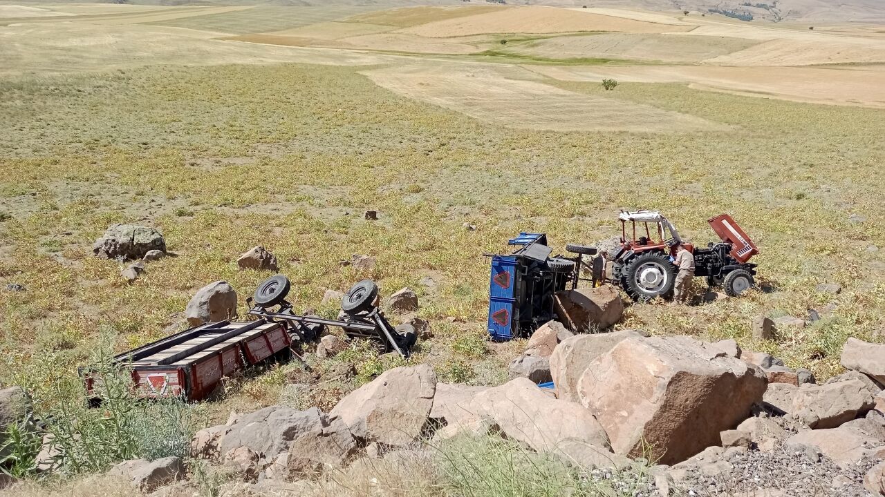 İlçeye bağlı Hoşgeldi köyü yolunda, sürücüsü ve plakası henüz öğrenilemeyen iki römork takılı traktör kontrolden çıkarak uçuruma yuvarlandı.