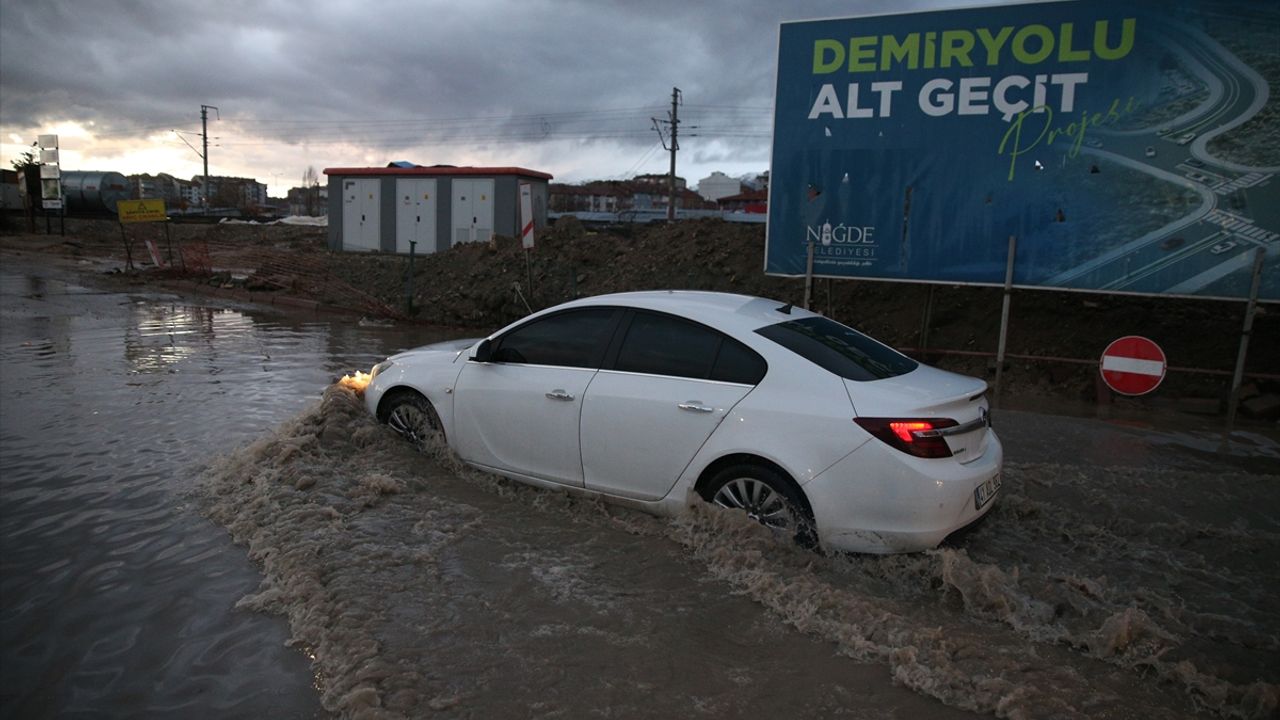 NİĞDE (AA) - Niğde'de kuvvetli sağanak ve rüzgar hayatı olumsuz etkiliyor.