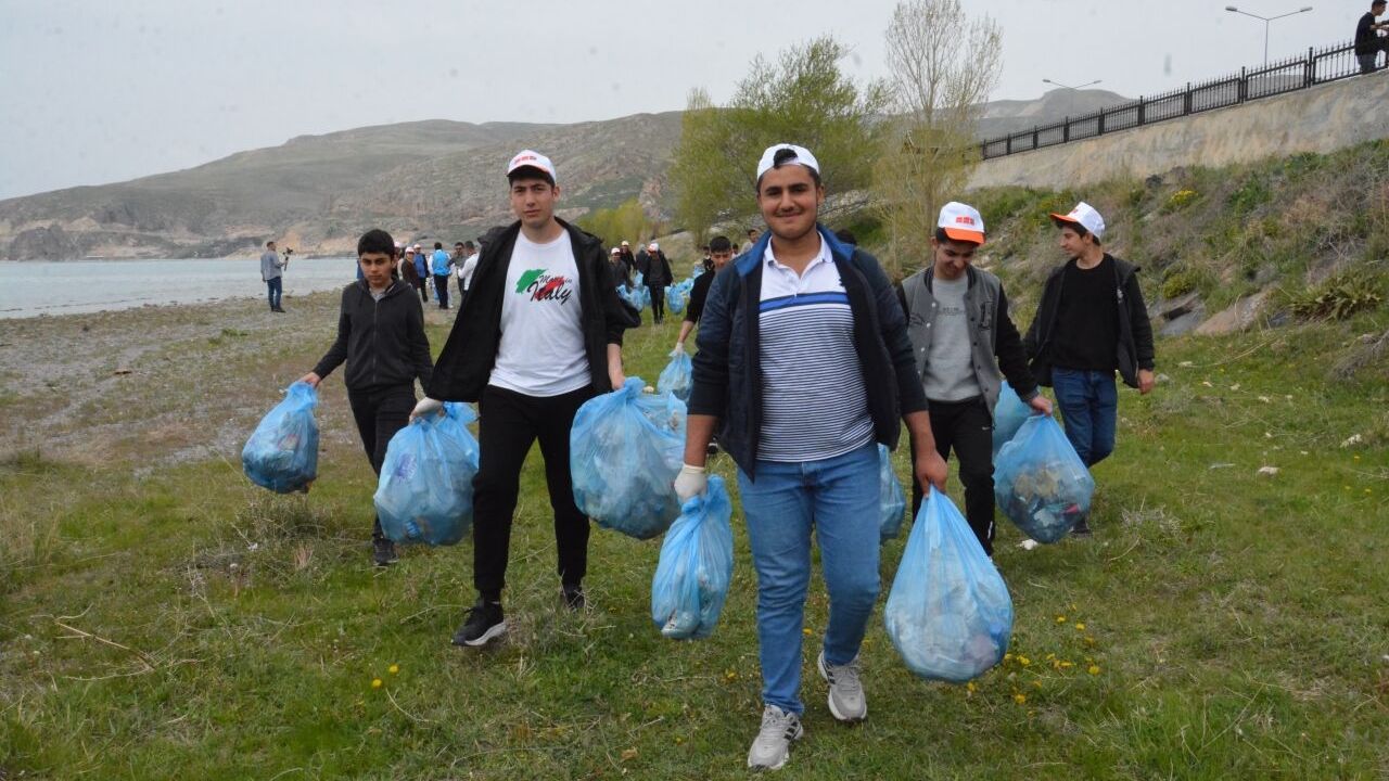 "Van Gölü ilçemizin vitrini, sahip çıkalım", "Suyu kirletmek, geleceği kirletmektir", Sahip çık çevreye, umut ol geleceğe" yazılı pankartlar taşıyan öğrenciler ve diğer katılımcılar sahilde çöp topladı.