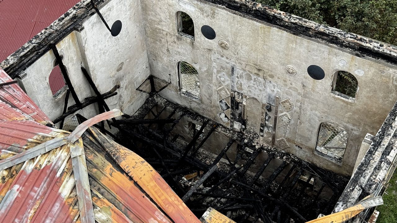 Ekiplerin müdahalesiyle söndürülen yangında cami kullanılamaz hale geldi.