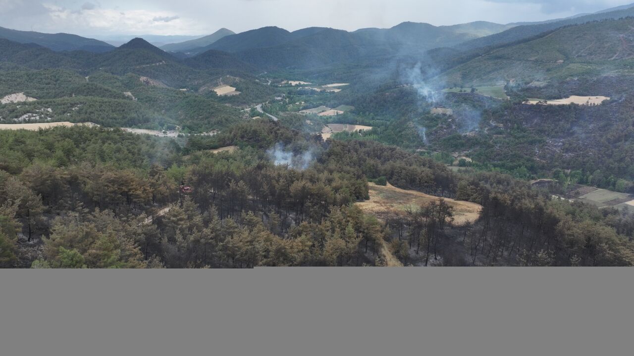 Ekipler, kontrol altına alınan ancak sarp arazide farklı bölümler halinde devam eden yangın alanlarında ise söndürme çalışması yürütüyor.