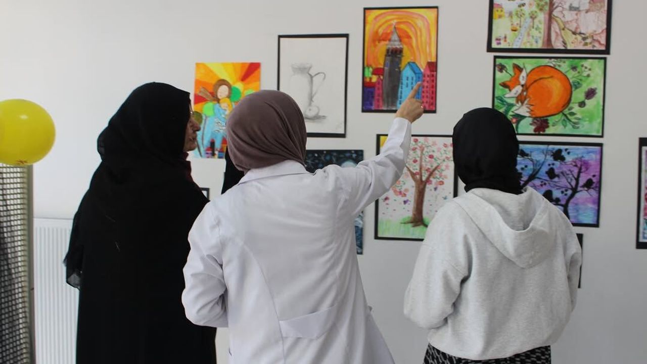 Adapazarı ilçesindeki özel okulda öğrenim gören 3. sınıf öğrencisi Ecenaz Sali, görsel sanatlar dersinde yaptığı resimlerden sergi açtı.