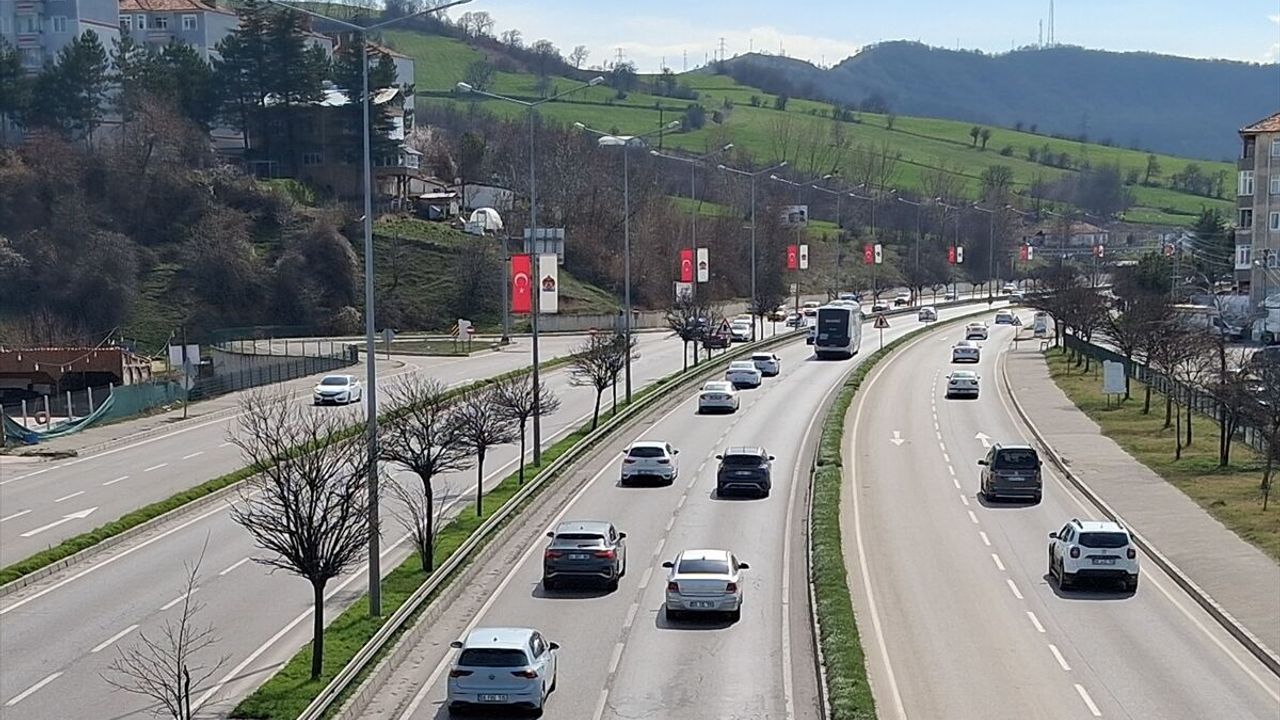 Bayram tatilinin ardından araçlarıyla dönüşe geçenler, Karadeniz Bölgesi'ni İç Anadolu'ya bağlayan önemli güzergahlardan Samsun-Ankara kara yolunun Havza kesiminde yoğunluk oluşturdu.