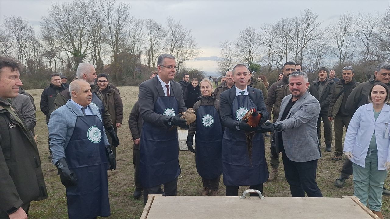 Rehabilitasyon süreçleri tamamlanan yaban hayvanlarının doğayla tekrar buluşturulduğu törende 2 pelikan, 2 kızıl şahin, 1 şahin, turna ve 15 sülün protokol üyeleri tarafından doğal yaşam alanlarına bırakıldı.