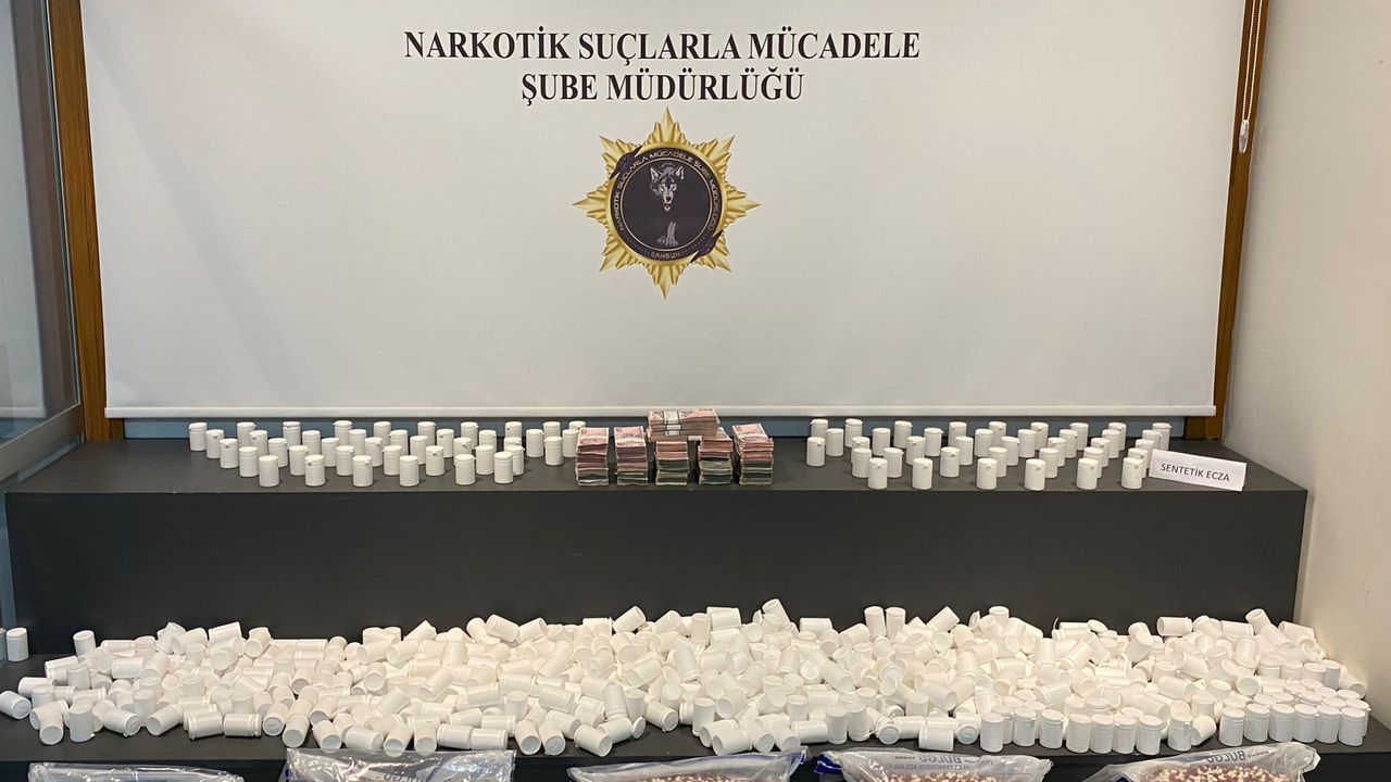 Yapılan detaylı aramalarda, 110 bin 466 sentetik ecza hap, uyuşturucu ticaretinden elde edildiği değerlendirilen 598 bin 770 lira nakit para ele geçirildi.