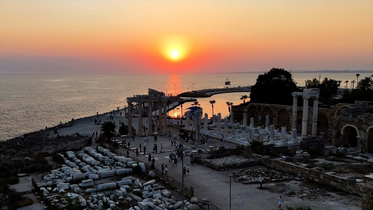 ANTALYA (AA) - Antalya'nın Manavgat ilçesindeki tarihi Side Antik Kenti'nde yer alan Apollon Tapınağı, gün batımında sunduğu eşsiz manzarayla yerli ve yabancı turistlerin ilgisini çekiyor.