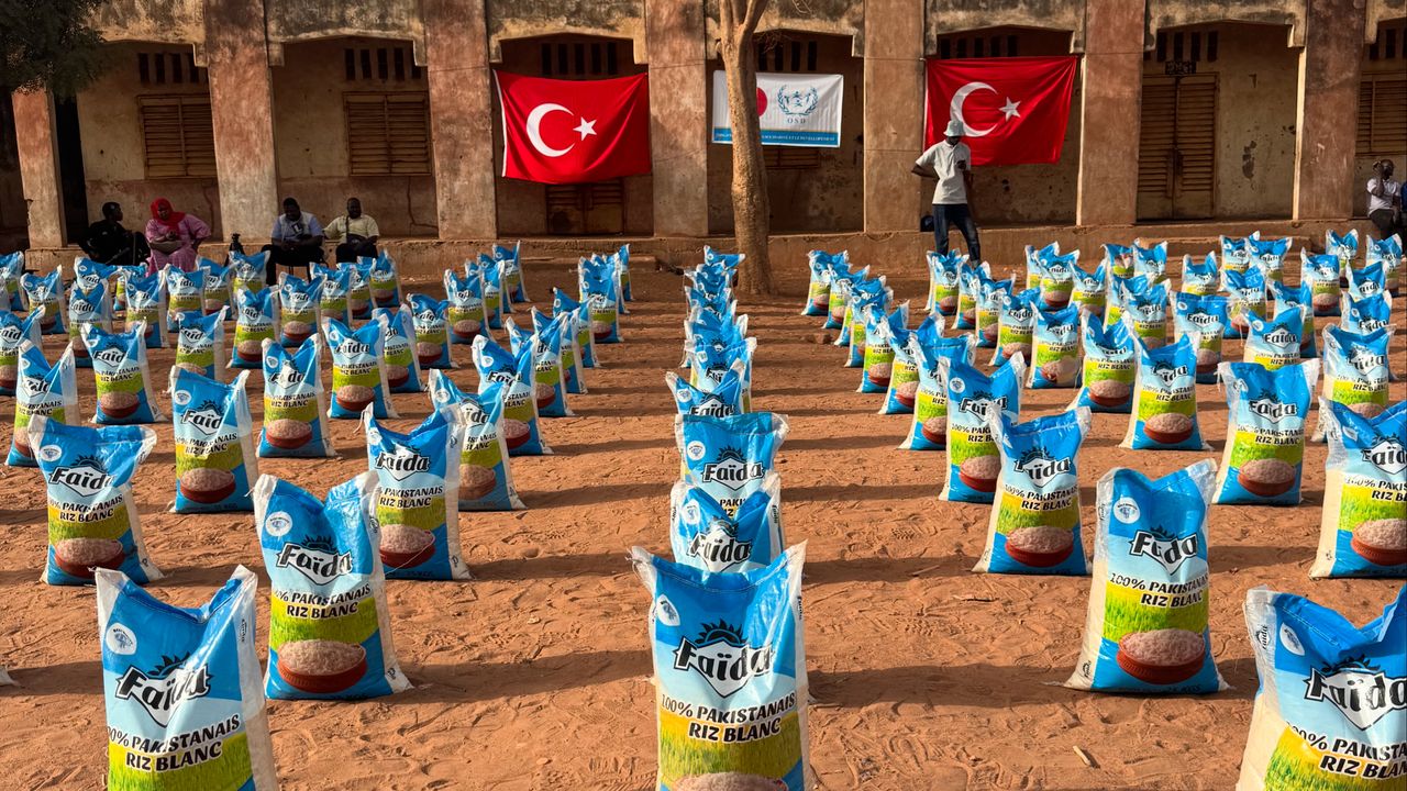 Batı Afrika ülkesi Mali'nin başkenti Bamako'da ihtiyaç sahibi 1000 aileye, Türkiye, Almanya ve Yunanistan'daki hayırseverlerin desteğiyle hazırlanan erzak dağıtıldı.