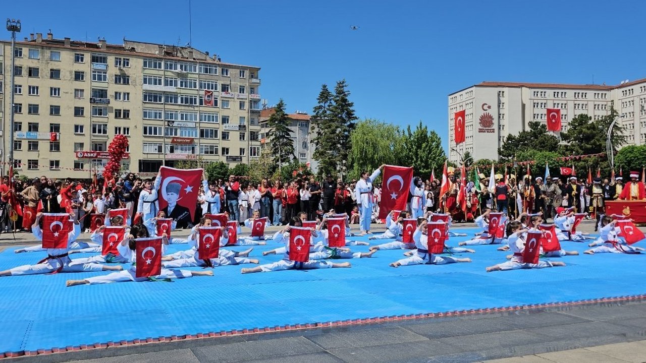 Hüseyin Akbaş Spor Salonu'nda saygı duruşunda bulunulması ve İstiklal Marşı'nın okunmasıyla başlayan törende, öğrenciler cimnastik, judo ve tekvando ile halk oyunları gösterileri sundu.