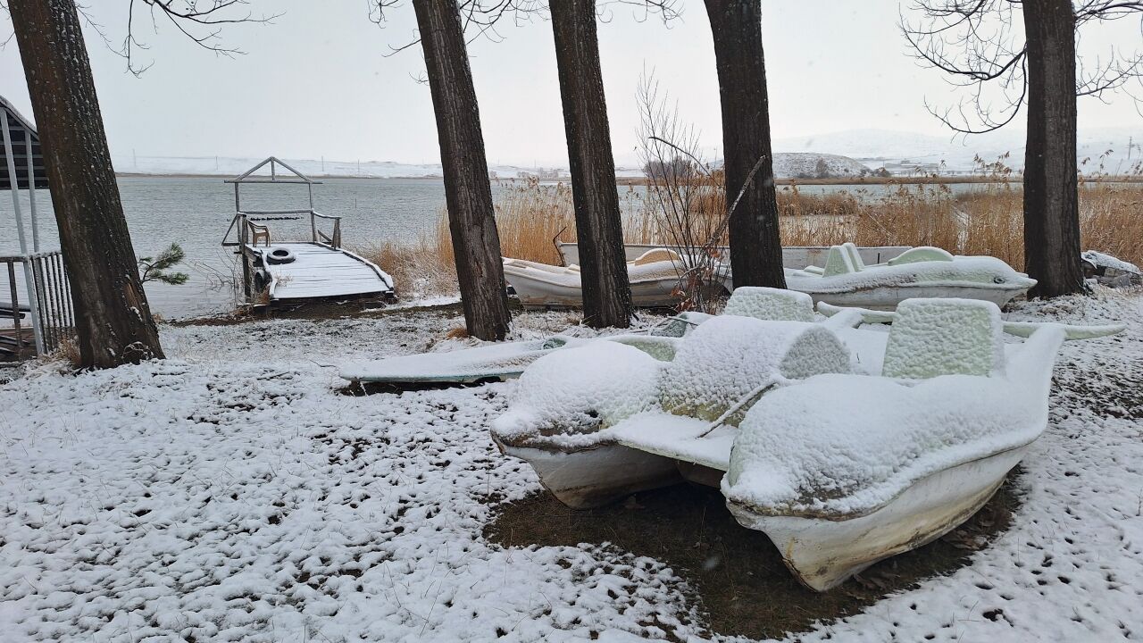 Beyaza bürünen ilçede ve Hafik Gölü'nde sakarmeke kuşlarıyla birlikte güzel görüntüler oluştu.