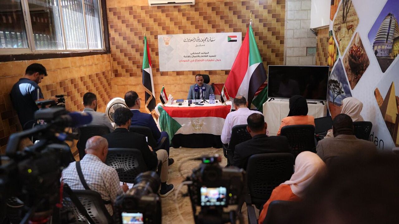 Başkent Şam'daki Sudan Büyükelçiliği'nde basın toplantısı düzenleyen Hasan, Nisan 2023'te başlayan çatışmalar, ülkedeki insani kriz, barış girişimleri ve hükümetin savaşı sonlandırmak için yürüttüğü çabalar hakkında değerlendirmelerde bulundu.