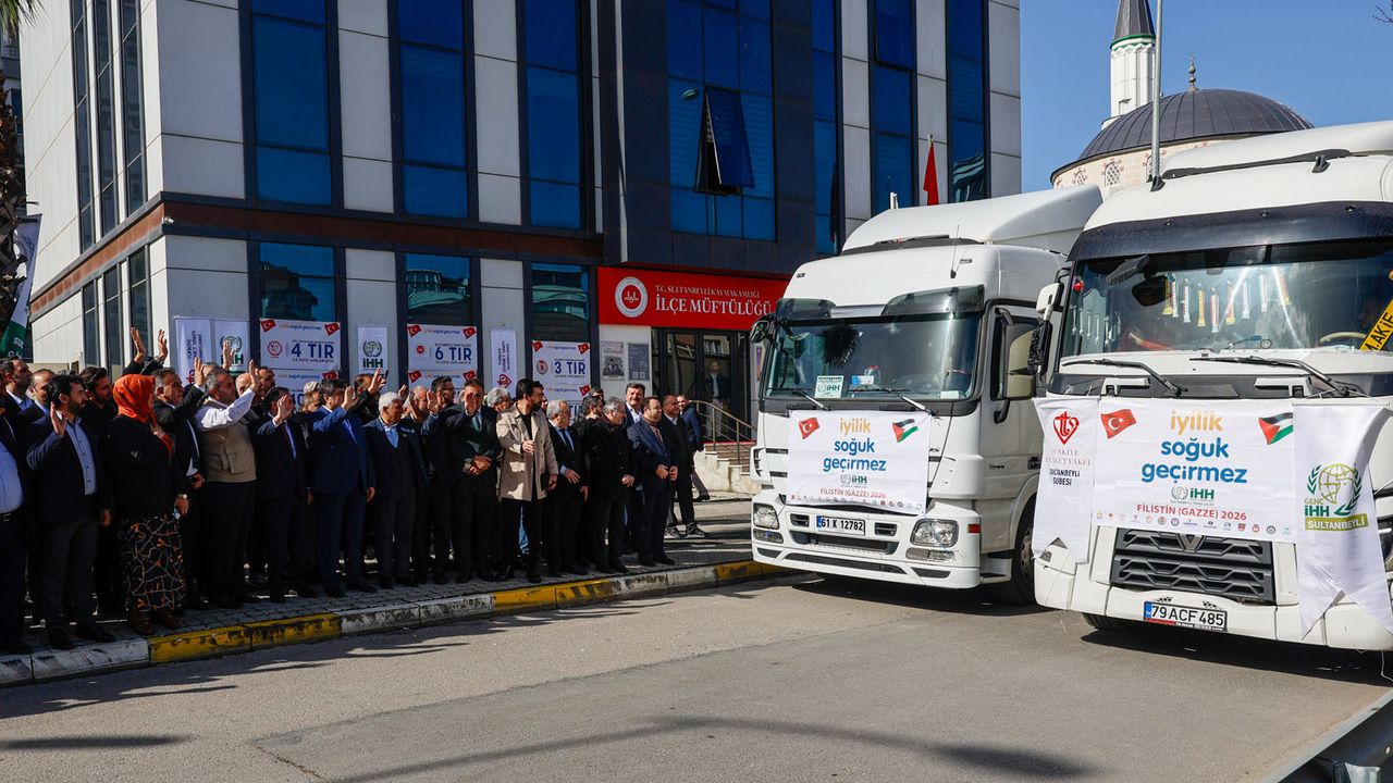 İlçe Müftüsü Bilal Albayrak'ın dua ettiği törende yardım tırlarından 2'si Gazze'ye, 2'si Suriye'ye ve 1'i de Sudan'a olmak üzere toplam 5 tır yolcu edildi.